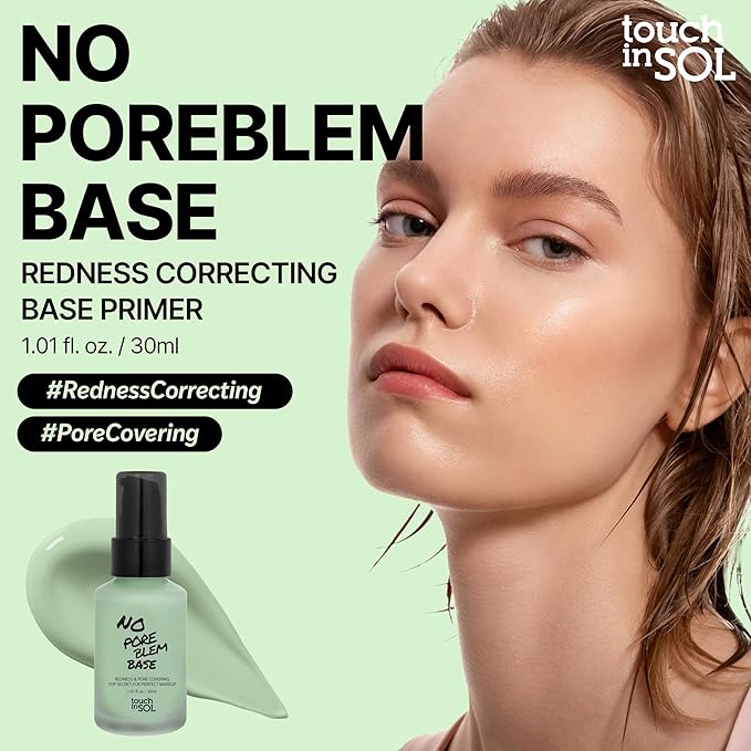 TOUCH IN SOL No Poreblem Redness Correcting Base Primer- Pore Minimizing Green Toned Makeup Base - Tone Neutralizing before Foundation - Minimize Rosacea, Redness 1.01 fl.oz.
