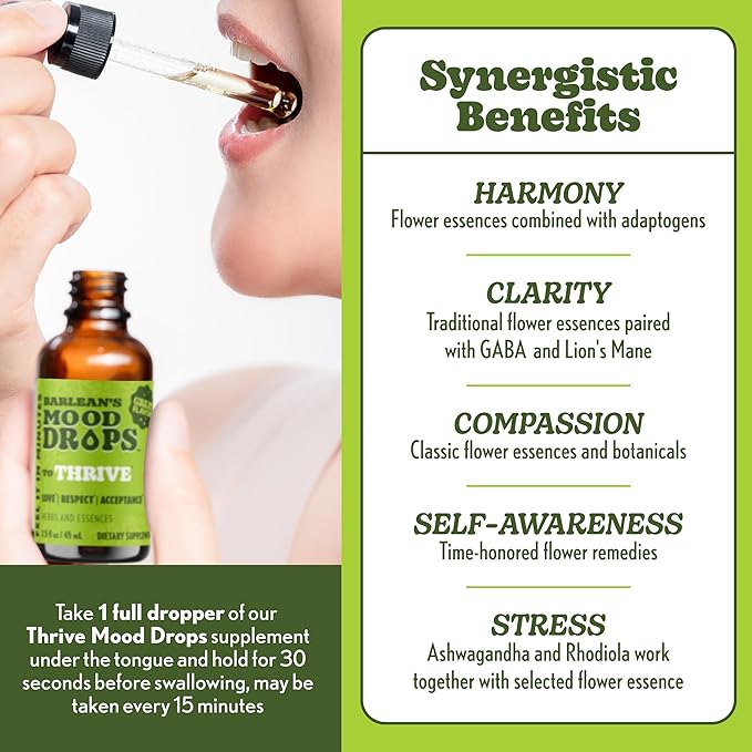 - DAILY BALANCE AND HARMONY: Help support daily balance and harmony with our Thrive Mood Drops! Our liquid drop supplements feature a unique blend of flower essences and herbal compounds which may help support emotional balance, may help maintain inner harmony, may help promote well-being, and may help maintain adaptability during life's demanding seasons