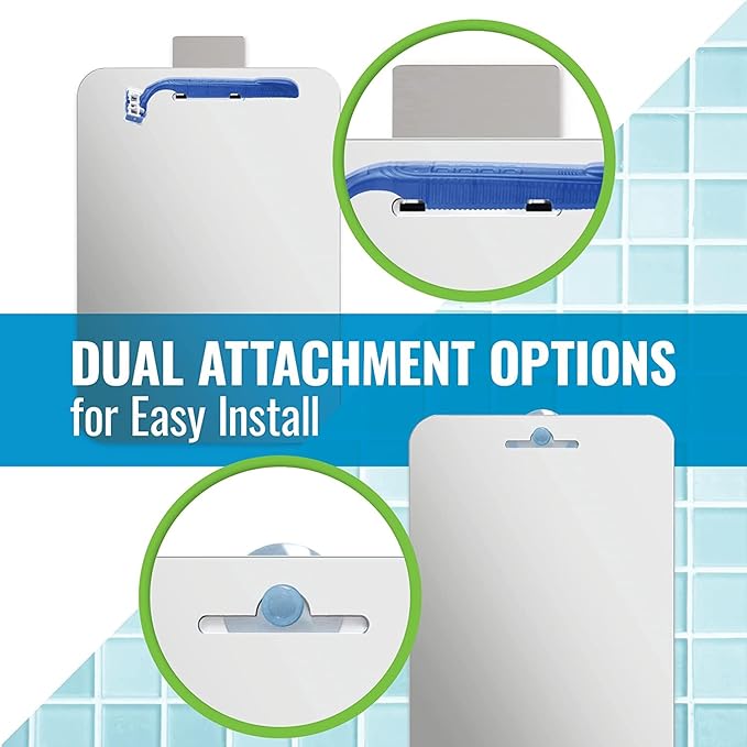 - Easy Installation: We offer dual attachment options for your convenience: a suction cup and a razor hook for versatile mounting, and you can stick the mirror to any clean, smooth surface. It is also removable from the wall for easy cleaning.