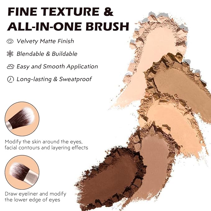 • 【Multi-Purposes】- This makeup palette is not only a simple eye shadow palette, but also can be used as a contour palette. It can also be used as a facial repair powder. Velvety matte formula provides good adhesion and a bold velvet color, which is very suitable for natural makeup and brown eyeshadow makeup