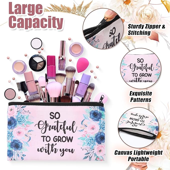 Meanplan 24 Pieces Mother's Day Makeup Bags Bulk Mom Gifts Canvas Cosmetic Purse Organizer Zipper Cosmetic Pouch Portable Travel Toiletry Pouch Mother's Day Gifts Women Birthday Retirement