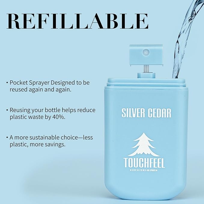 - REFILLABLE POCKET SPRAYER: Hand Wash Spray offers 460+ sprays per bottle, guaranteeing lasting freshness and cleanliness throughout the day. This extensive usage ensures that you remain hygienic and confident wherever you go. Furthermore, its refillable design not only aligns with the concept of sustainable development, but also significantly reduces the inconvenience associated with the frequent replacement of new bottles