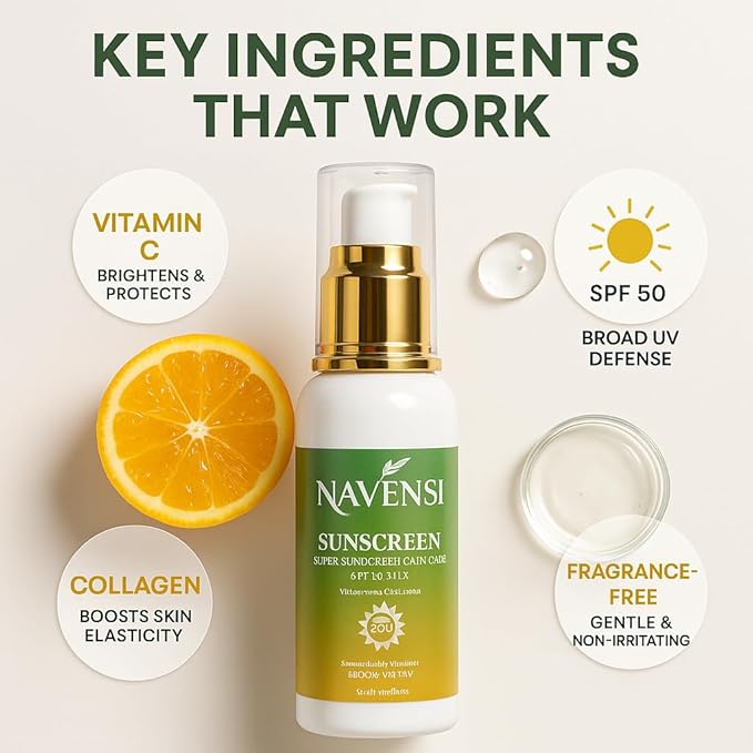 SPF 50 Sunscreen 80ml / 2.7 fl oz β Broad Spectrum UVA/UVB Protection with Vitamin C & Collagen β Lightweight, Non-Greasy & Hydrating Sunblock for Face & Body β Anti-Aging, Anti-Wrinkle