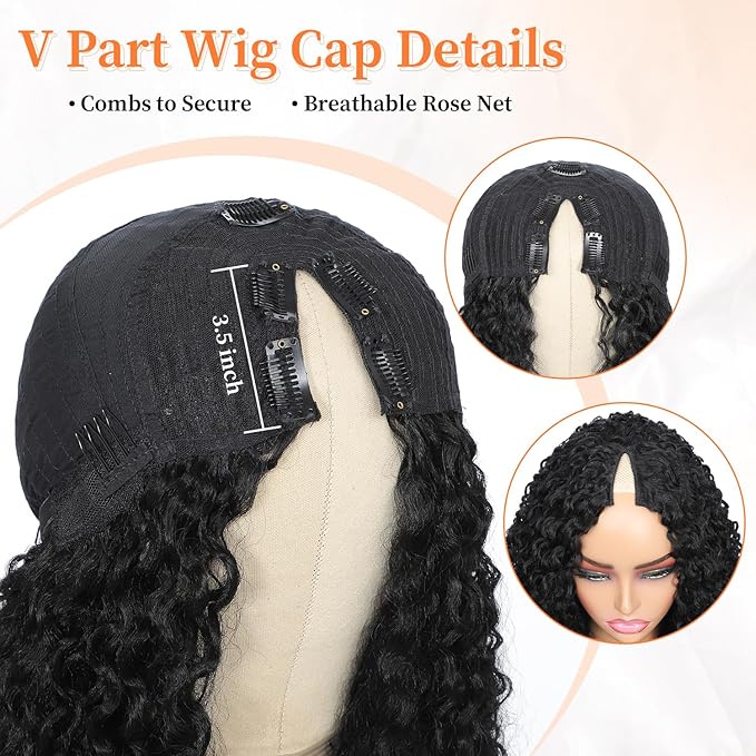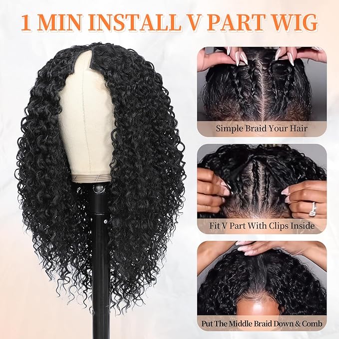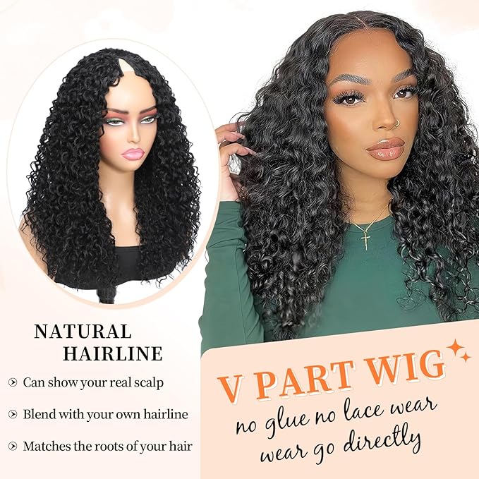 - 【Natural V-Part Design】The Curly V Part Wig features a realistic V-shaped parting that mimics the natural hairline, offering a seamless and undetectable look. This design eliminates the need for leave-out, making it easy to wear and style. Upgrade from U part human hair wig.