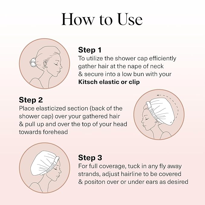 - ADJUSTABLE & SECURE FIT: Kitsch flexi shower cap offers an extra-wide size and a secure and adjustable fit that caters to all head sizes, ensuring no slipping or discomfort during your shower routine.