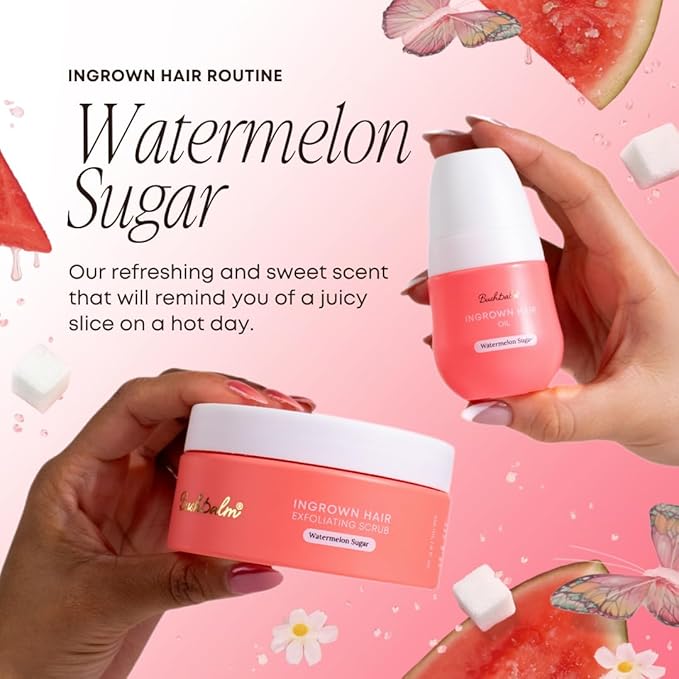 - Say Goodbye to Ingrown Hairs: Watermelon Sugar Exfoliating Scrub is a natural sugar body scrub that exfoliates, hydrates, softens, smooths and reduces the appearance of ingrown hairs. It can also help reduce rough, bumpy skin found anywhere on the body, including your most sensitive areas. Watermelon Sugar has the scent of summer β imagine a juicy slice on a hot day, instantly quenching your skin's thirst for a taste.