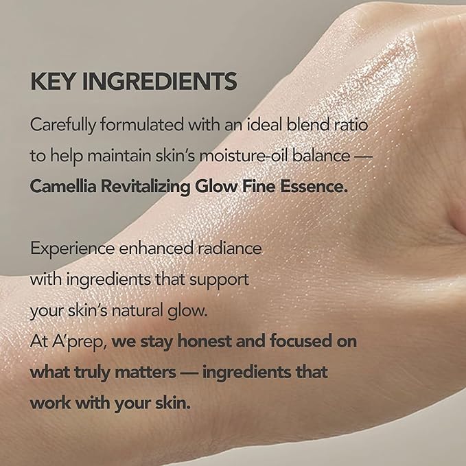 A'Prep Camellia Revitalizing Glow Fine Essence – Ultra-Fine Hydrating Mist with Camellia Extract, Niacinamide & Hyaluronic Acid for Radiant Skin, Korean Skincare, 120ml