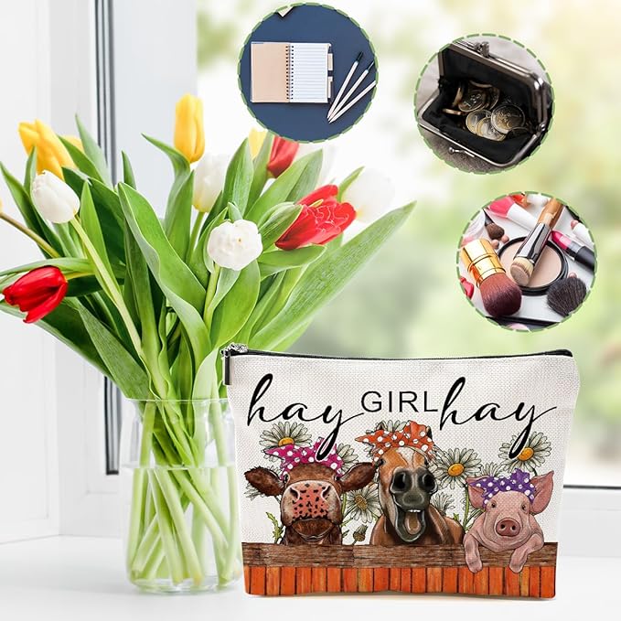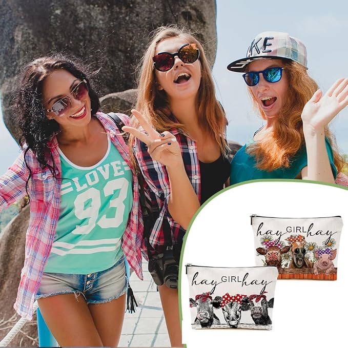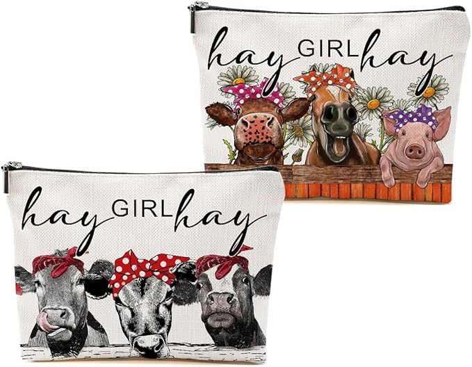 2pcs Funny Farm Animals Cow Stuff Western Makeup Bag, Farm Animals Cosmetic Bag Cow Gifts for Women Female Girls Sister BFF, Christmas Birthday Gift, Western Stuff Travel Toiletry Bags