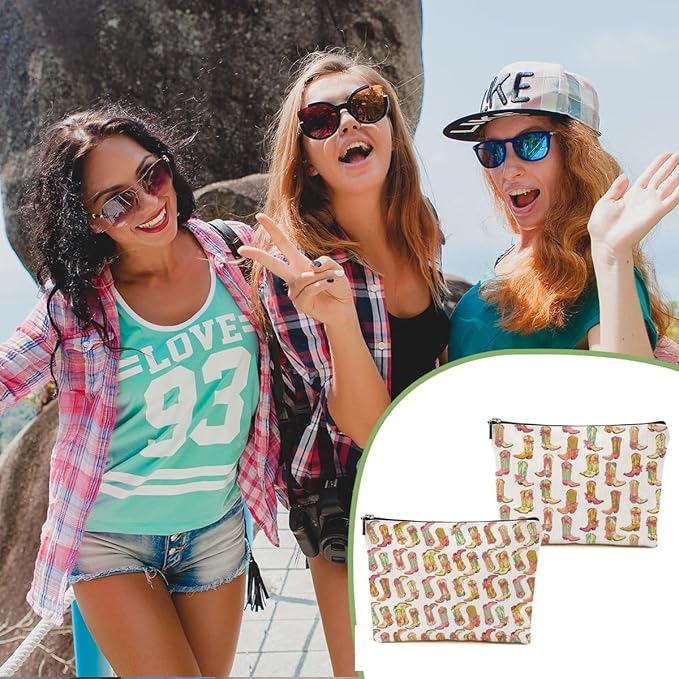 2pcs Western Makeup Bag, Western Gifts for Women Cosmetic Bag Cowgirl Gifts for Women Female Girls Sister BFF, Cowboy Boots Gift Christmas Birthday Gift, Cowgirl Stuff