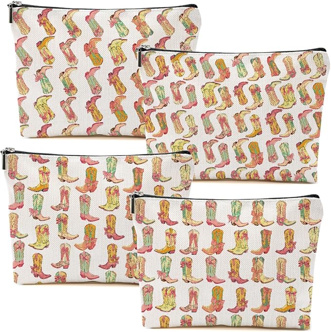 4pcs Western Makeup Bag, Western Gifts for Women Cosmetic Bag Cowgirl Gifts for Women Female Girls Sister BFF, Cowboy Boots Gift Christmas Birthday Gift, Cowgirl Stuff