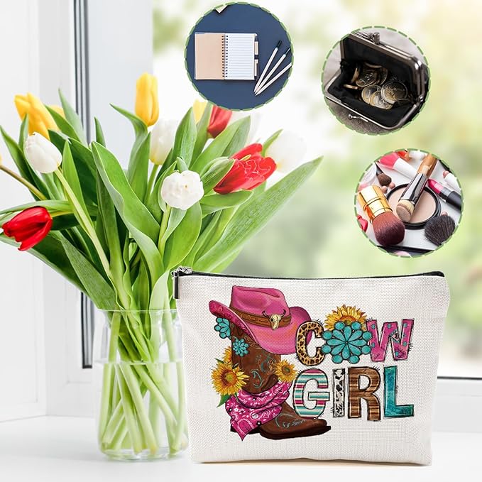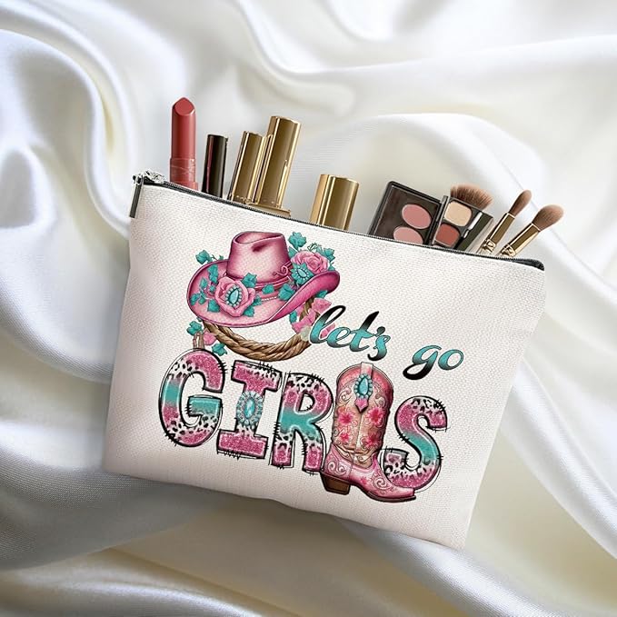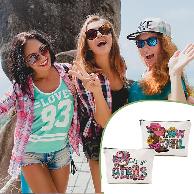 2pcs Western Makeup Bag, Let's Go Girls Cowgirl Hat Boots Cosmetic Bag Cowgirl Gifts for Women Female Girls Sister BFF, Cowboy Boots Gifts Christmas Birthday Gift, Western Stuff Travel Toiletry Bags