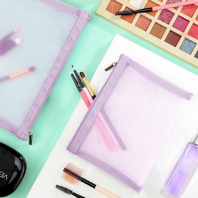 Boao 6 Pieces Mesh Makeup Bags Mesh Cosmetic Bag Portable Travel Organizing Zipper Pouch Toiletries Makeup Pouches for Home Office Travel Accessories (Light Purple)