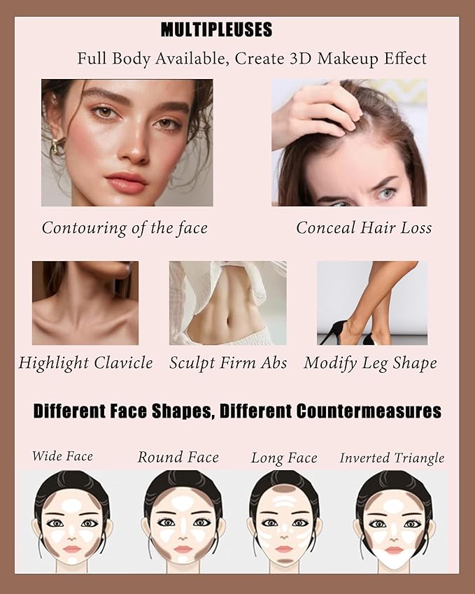 - Widely Used - This contour stick is so versatile that you can use it on your collarbone, brow bone, temples, nose, forehead, brow line, chin, and other shaded areas! Suitable for all skin types and occasions, whether you're a makeup beginner or a seasoned professional, this versatile tool is a must-have for your beauty routine.