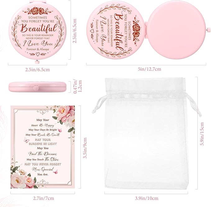 • Inspirational Design: Each mirror features the uplifting message "Sometimes You Forget You're Beautiful," offering daily encouragement and positivity.