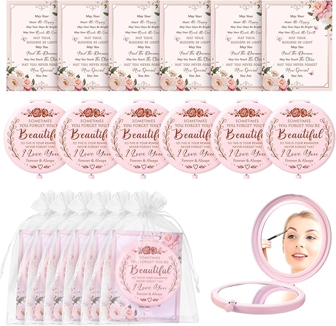 6-Pack Inspirational Compact Mirrors – 'Sometimes You Forget You're Beautiful' – Pink Pocket Mirrors – Appreciation Gifts for Women, Party Favors, Magnifying Makeup Mirrors