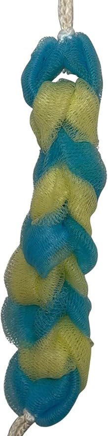 Long Reach Nylon Mesh Elastic Dual-Color Bathing Sponge for Soft Sensitive Skin (Blue-Lemon)