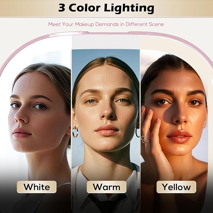 • 【Adjustable Brightness】This multifunctional LED mirror is a travel mirror with a wide range of uses and handy features. It's a super creative "magic mirror" with three colors of lighting :warm light, natural light, and white light, and you can adjust the brightness (the max brightness is like a small bedside table lamp). You can pair it with different colors and brightness levels to show off your unique beauty in different situations
