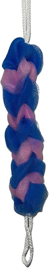 Long Reach Nylon Mesh Elastic Dual-Color Bathing Sponge for Soft Sensitive Skin (Blue-Pink)