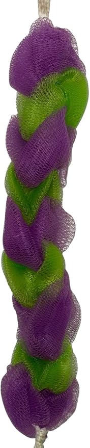 Long Reach Nylon Mesh Elastic Dual-Color Bathing Sponge for Soft Sensitive Skin (Lime-Purple)