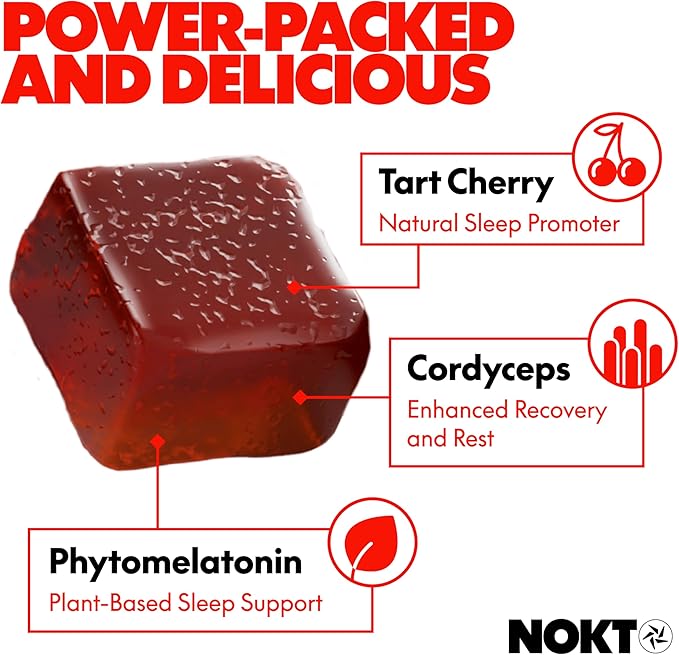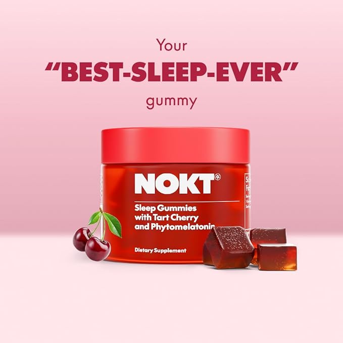NOKT Sleep Gummies - Tart Cherry & Vegan Melatonin, Sugar-Free, Gluten-Free, Nutritional Supplement, 30 Gummies, Tart Cherry Flavor, Gummy Form, Deep Restorative Sleep Support