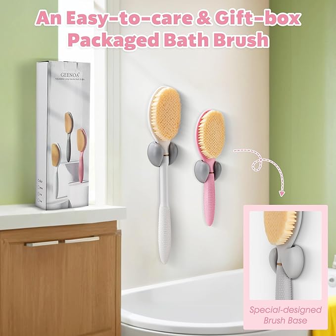 - 【Colorful Gift-box Packaged】GEENOA Shower scrubber is packed in high-quality gift box along with a special-designed brush holder. It saves your time and money to add a gift package. It’s no-molding and easy to maintain, just rinse with water and hang dry. It’s super durable to last for a long time. Package includes: bath brush x1, brush holder x1.