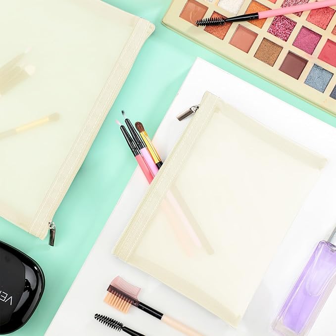 Boao 6 Pieces Mesh Makeup Bags Mesh Cosmetic Bag Portable Travel Organizing Zipper Pouch Toiletries Makeup Pouches for Home Office Travel Accessories (Beige)
