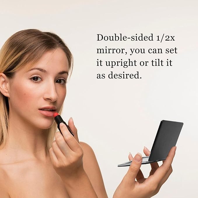 - Flexible Open and Close: This pocket mirror can be opened fully to 180 degrees and lays flat or stays at any angle on a table. No need to hold it constantly.