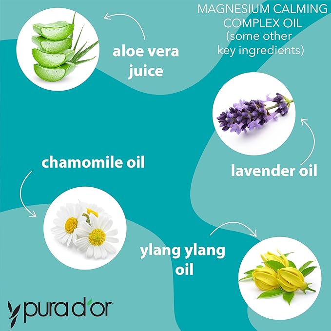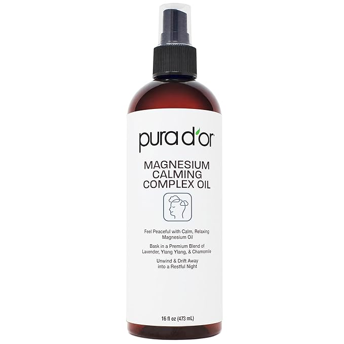 PURA D'OR 16 Oz Magnesium Oil Water Based Spray - Calming Topical Blend with Lavender, Ylang Ylang, Chamomile - Fast-Absorbing, Skin-Friendly Formula for a Soothing Sensation