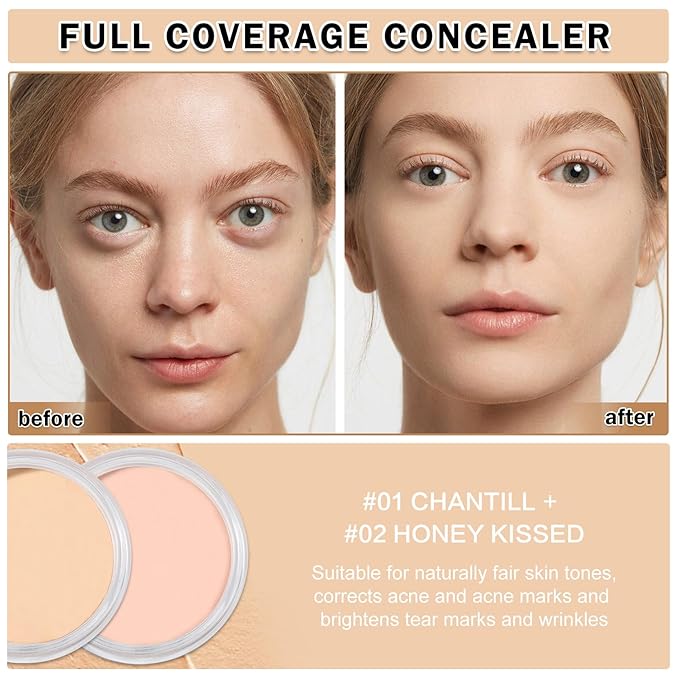2PCS Under Eye Concealer for Dark Circles Color Correcting,Pro Concealer Full Coverage Tattoo Cover up Makeup,Long-lasting Corrector de Ojeras (01 Chantill + 02 Honey Kissed)
