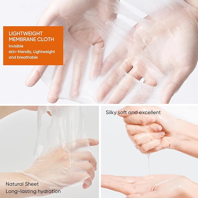 - NATURAL FACIAL SKINCARE:The texture and a soft, smooth touch, these masks deliver active ingredients deeper into the skin for greater moisturization, freshness, efficiency and adhesion; they stop water evaporation and lock in moisture, allowing the skin to absorb every drop.