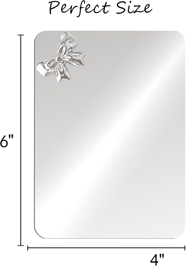 Magnetic Locker Mirror 4"x6" Small Real Glass Frameless Mirror with Magnetic Backing for School Locker, Bow School Locker Makeup Mirror for Girls Bathroom Refrigerator Dorm Gym Office Cabinet Home