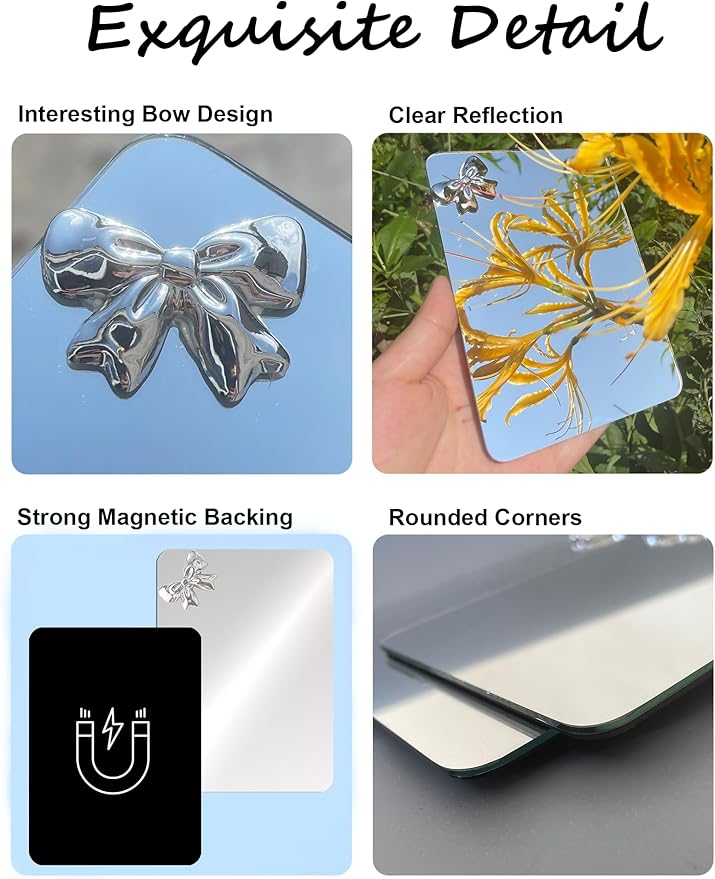 • 【Crystal Clear Reflection】Magnetic locker mirror for girls delivers ultra-clear reflections thanks to its premium high-refractive glass. The charming bow detail adds a touch of whimsy while guaranteeing you stay picture-perfect—ideal for school lockers, office desks, or even kitchen touch-ups.