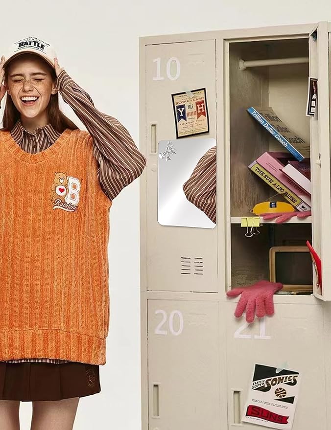 • 【Compact Size】The 6×7 inch magnetic locker mirror is perfect for most lockers, combining a compact size with a lovely design. It adds a touch of cuteness to your beauty and makeup routine on the go. With polished rounded corners for a comfortable touch, it’s ideal for travel, vacations, and camping.
