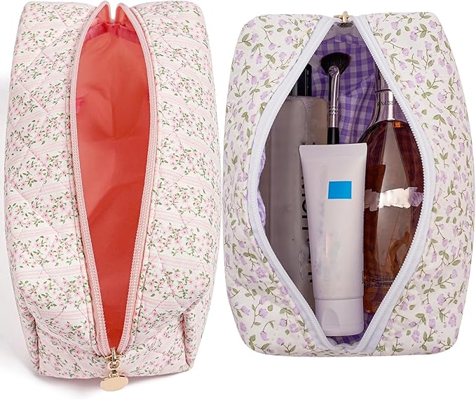 • πŸ’ Multi Purpose - The cotton quilted makeup bag can be used as daily handbags, cosmetics and skincare organizing bags, storage bags, and travel toiletry bags. The initial makeup storage bag can be used during travel because it is lightweight and does not take up too much space in the suitcase.