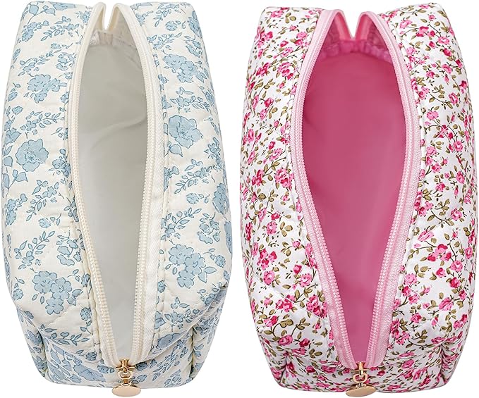 • πŸ’ Multi Purpose - The cotton quilted makeup bag can be used as daily handbags, cosmetics and skincare organizing bags, storage bags, and travel toiletry bags. The initial makeup storage bag can be used during travel because it is lightweight and does not take up too much space in the suitcase.