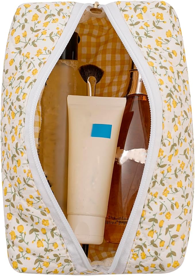 • πŸ’ Multi Purpose - The cotton quilted makeup bag can be used as daily handbags, cosmetics and skincare organizing bags, storage bags, and travel toiletry bags. The initial makeup storage bag can be used during travel because it is lightweight and does not take up too much space in the suitcase.