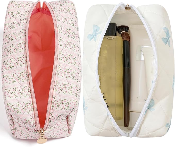 • πŸ’ Multi Purpose - The cotton quilted makeup bag can be used as daily handbags, cosmetics and skincare organizing bags, storage bags, and travel toiletry bags. The initial makeup storage bag can be used during travel because it is lightweight and does not take up too much space in the suitcase.