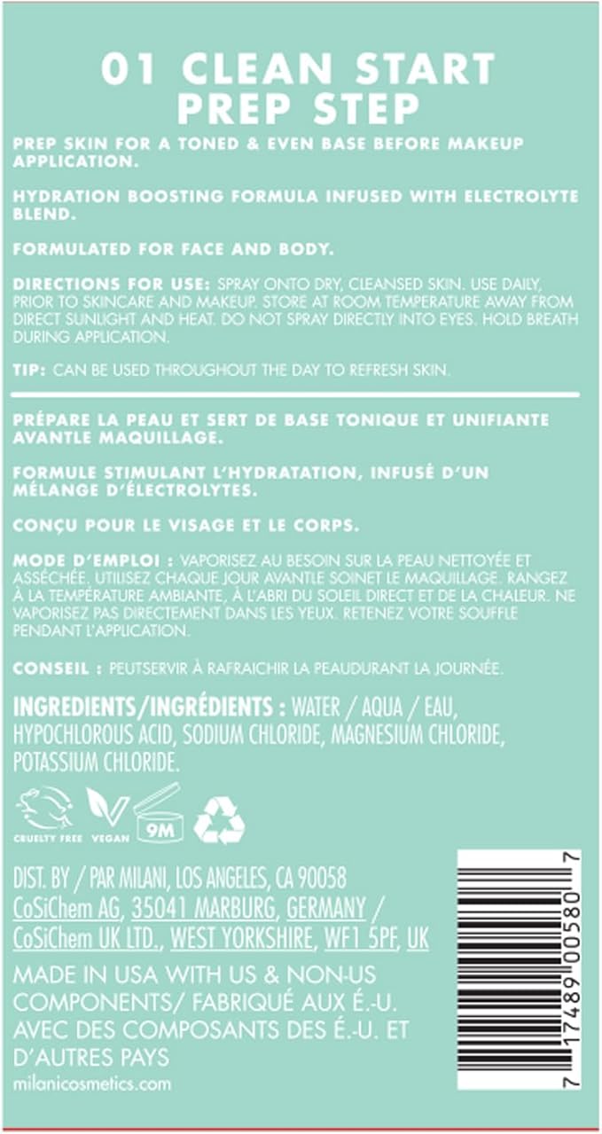 Milani Clean Start Prep Step Hypochlorous Acid Facial Mist