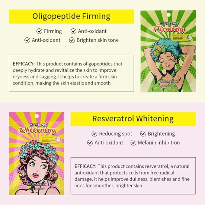 - Oligopeptide Face Mask: Deeply nourishes and revitalizes the skin, improving dryness and sagging. It helps create a firmer complexion, enhancing skin elasticity and smoothness.