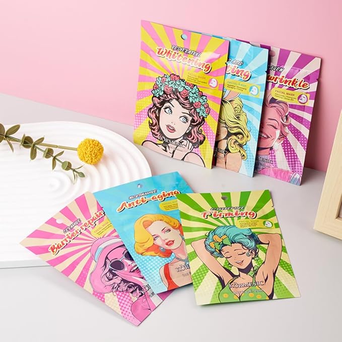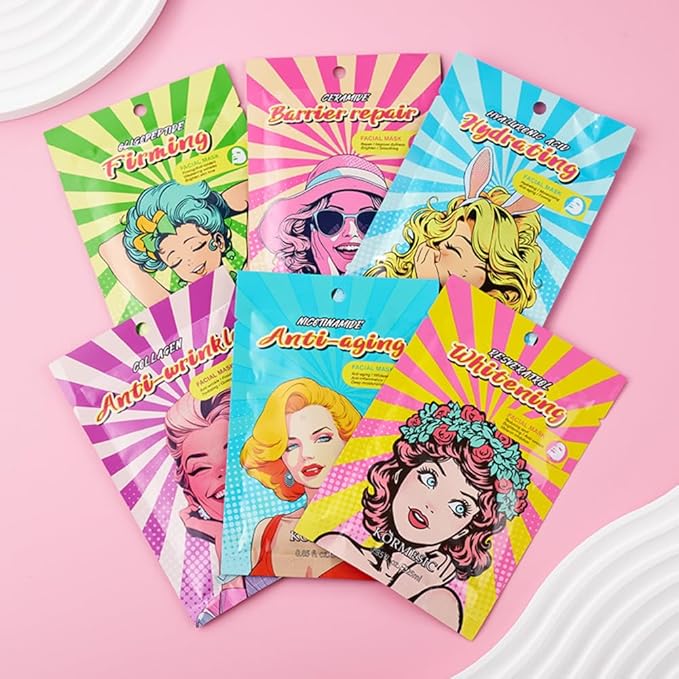 12 Combo Pack Face Mask (Collagen, Hyaluronic Acid, Niacinamide, Oligopeptide, Resveratrol, Ceramide) Hydrating & Moisturizing Facial Sheet Mask For Women Skincare