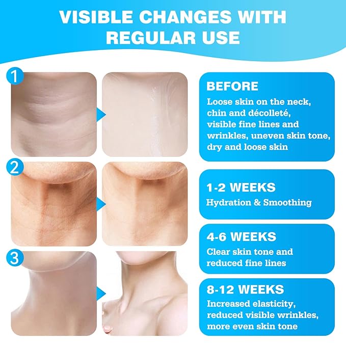 - Versatile Application: Extend the rejuvenating benefits to both your neck and chest. Regular use improves the look of sagging skin in these areas, enhancing your overall youthful radiance