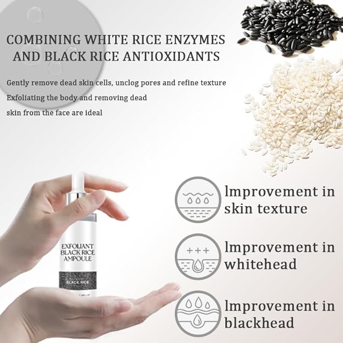 2PCS Rice Exfoliating Ampoule Set, 2025 Upgrade Black & White Rice Peeling Duo for Glowing Skin | Gentle Exfoliant + Pore Minimizing Serum + Deep Hydration & Hyaluronic Acid