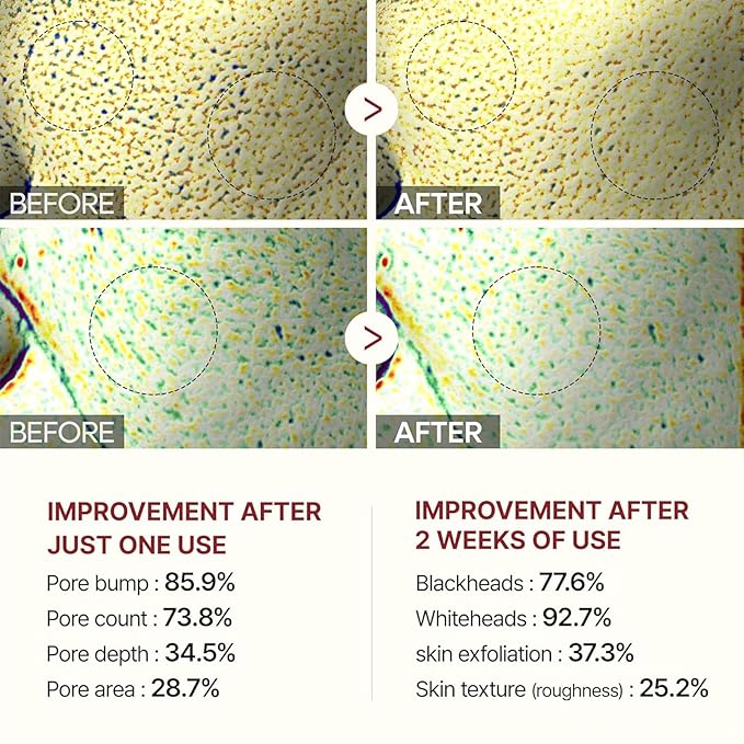 - [Natural Pore Minimizer Solution]: This black and white rice exfoliant peel shot solution targets blackheads and whiteheads using rice extracts and glycerin. As a pore minimizing rice ampoule, it visibly brightens and helps fade marks, supporting a clearer look on all skin types within 8 weeks