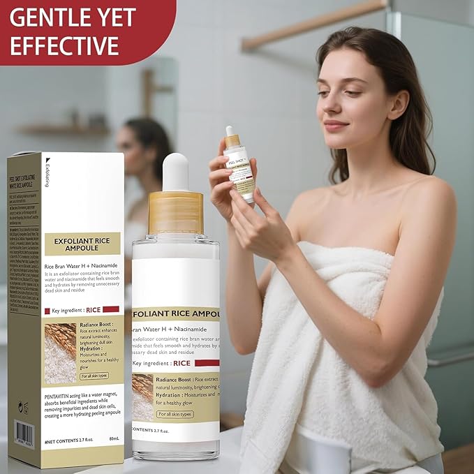 2PCS Rice Exfoliating Ampoule Set, 2025 Upgrade Black & White Rice Exfoliant, Peel & Shot Glow Rice Ampoule Duo for Glowing Skin | Gentle Peel + Pore Minimizing & Deep Hydration for All Skin Types