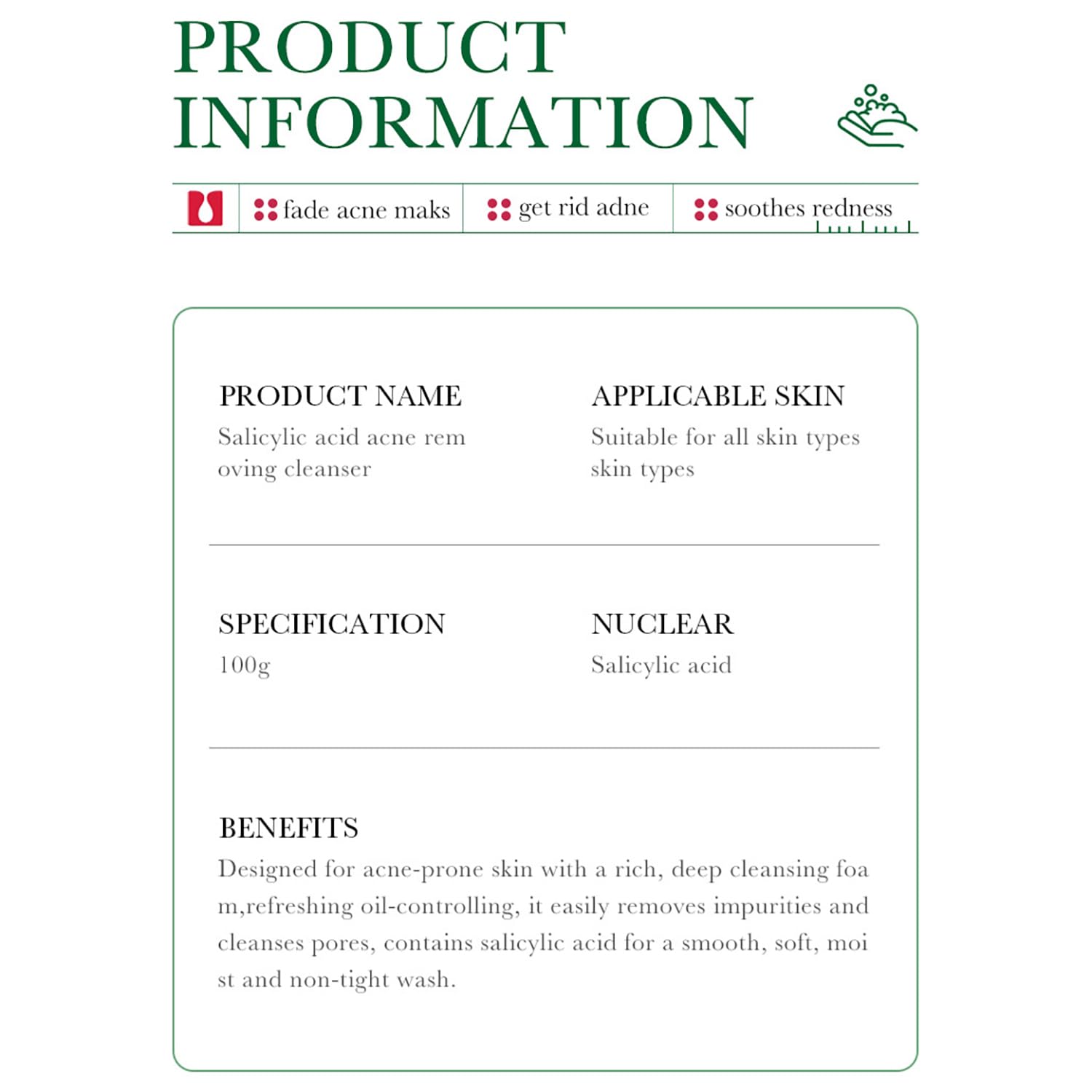 - Efficient Cleaning: Face Cleanser is a good cleanser, it can effectively cleanse the skin, improve its balance of the skin, and make your face glow from head to toe.