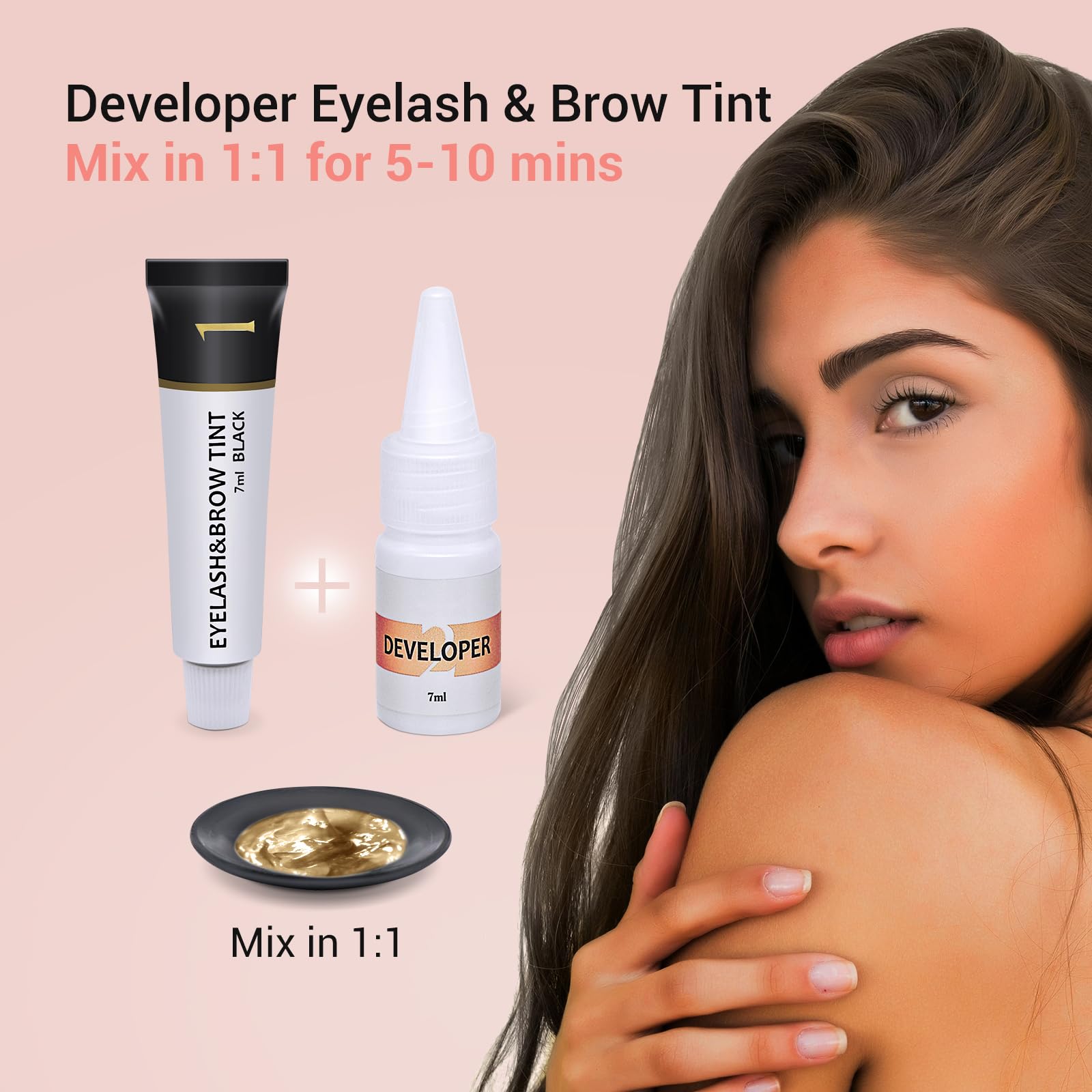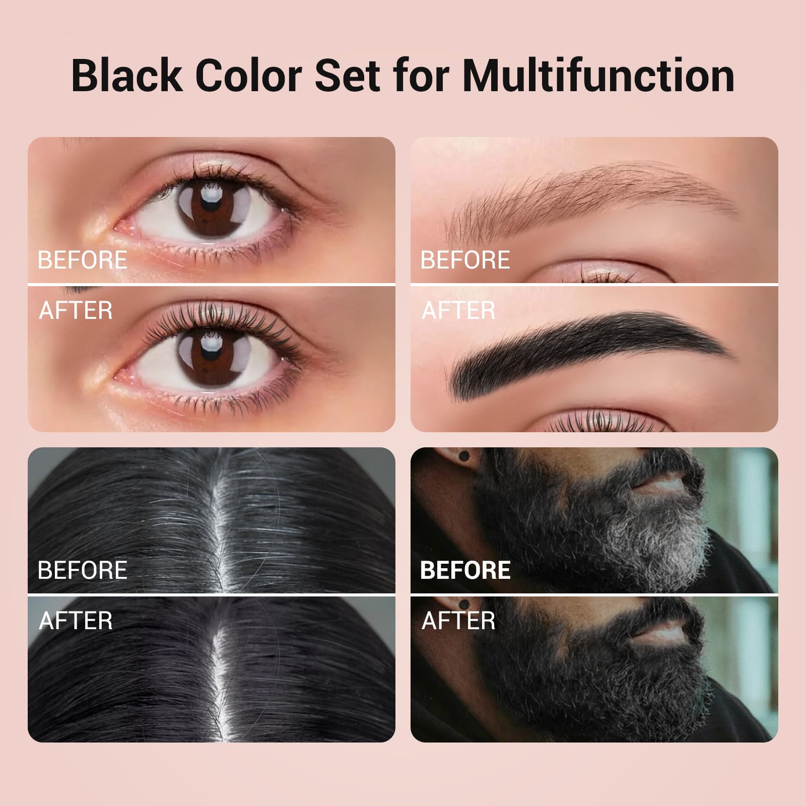 Eyebrow & Eyelash Color Kit, Professional Lash & Brow Color Kit, Instant Eyebrow Coloring Set with Natural Bushy Black Effects, Long-lasting, Easy to Use, 7ml, Black