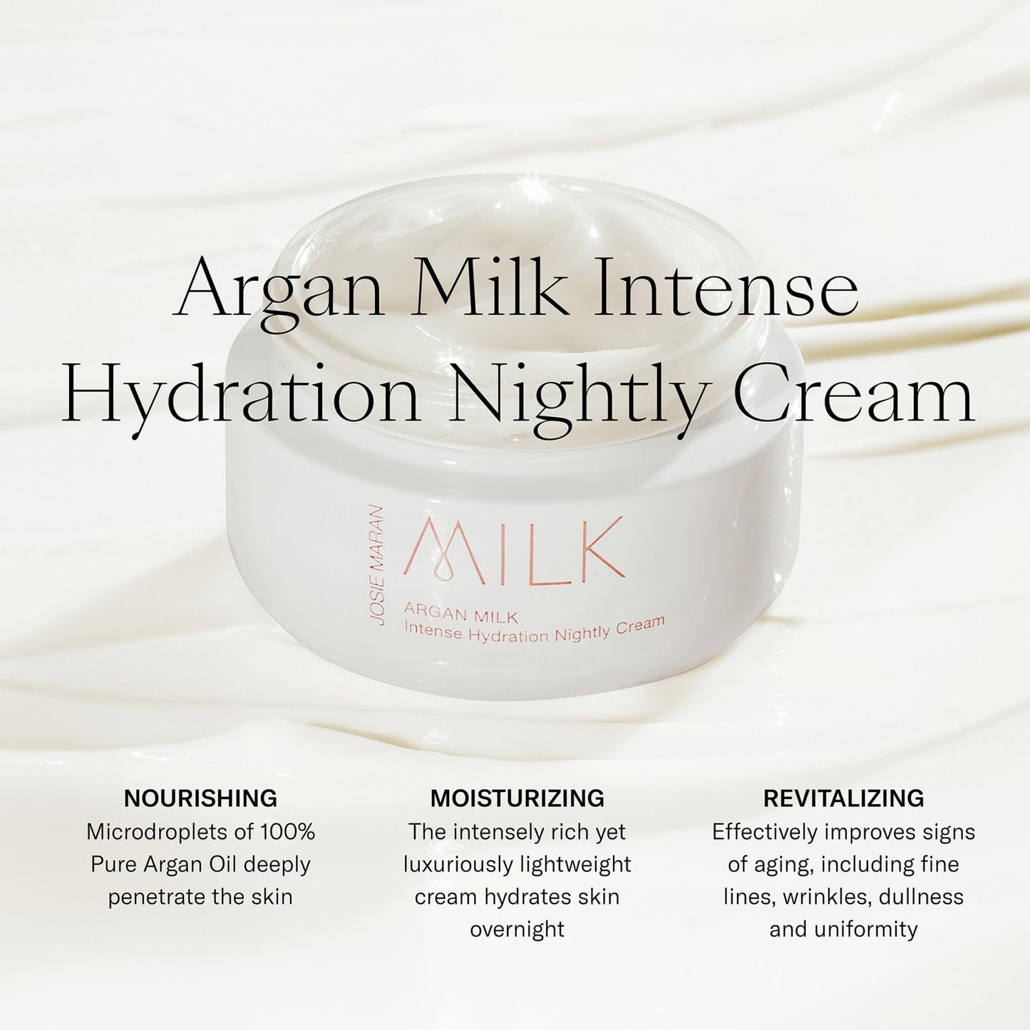- Nourishing Nightly Cream - Our Argan Milk Intense Hydration Night Cream is a hydrating face moisturizer that works with your skin's overnight recovery process to encourage healthy renewal and a fresh, dewy complexion come morning.