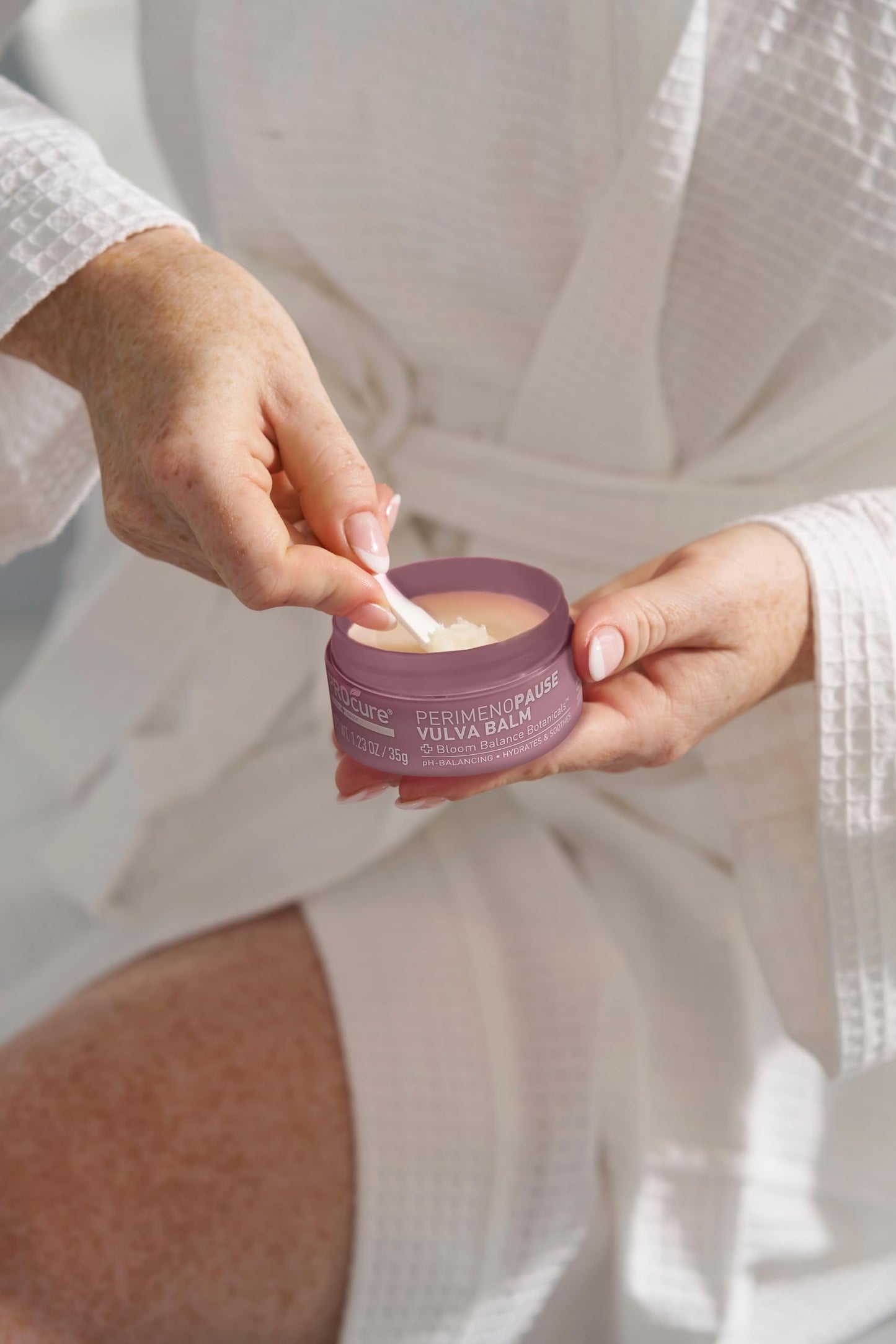 - This vulva care balm is designed for perimenopausal and menopausal women, helping increase moisture while calming itchiness or irritation. Does not contain any artificial fragrances or harsh chemicals.