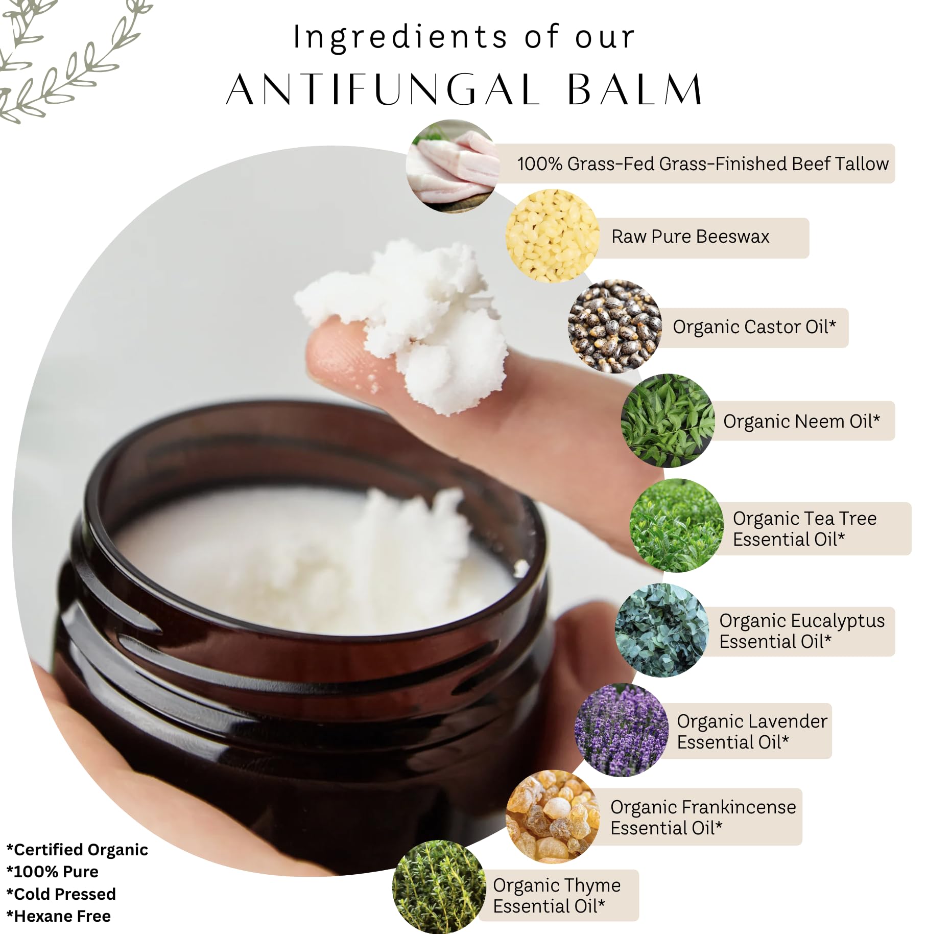 - TARGETED FUNGAL RELIEF: Formulated with grass-fed tallow, organic neem oil, organic castor oil, raw beeswax, and a powerful blend of organic antifungal essential oils including tea tree, thyme, and frankincense.