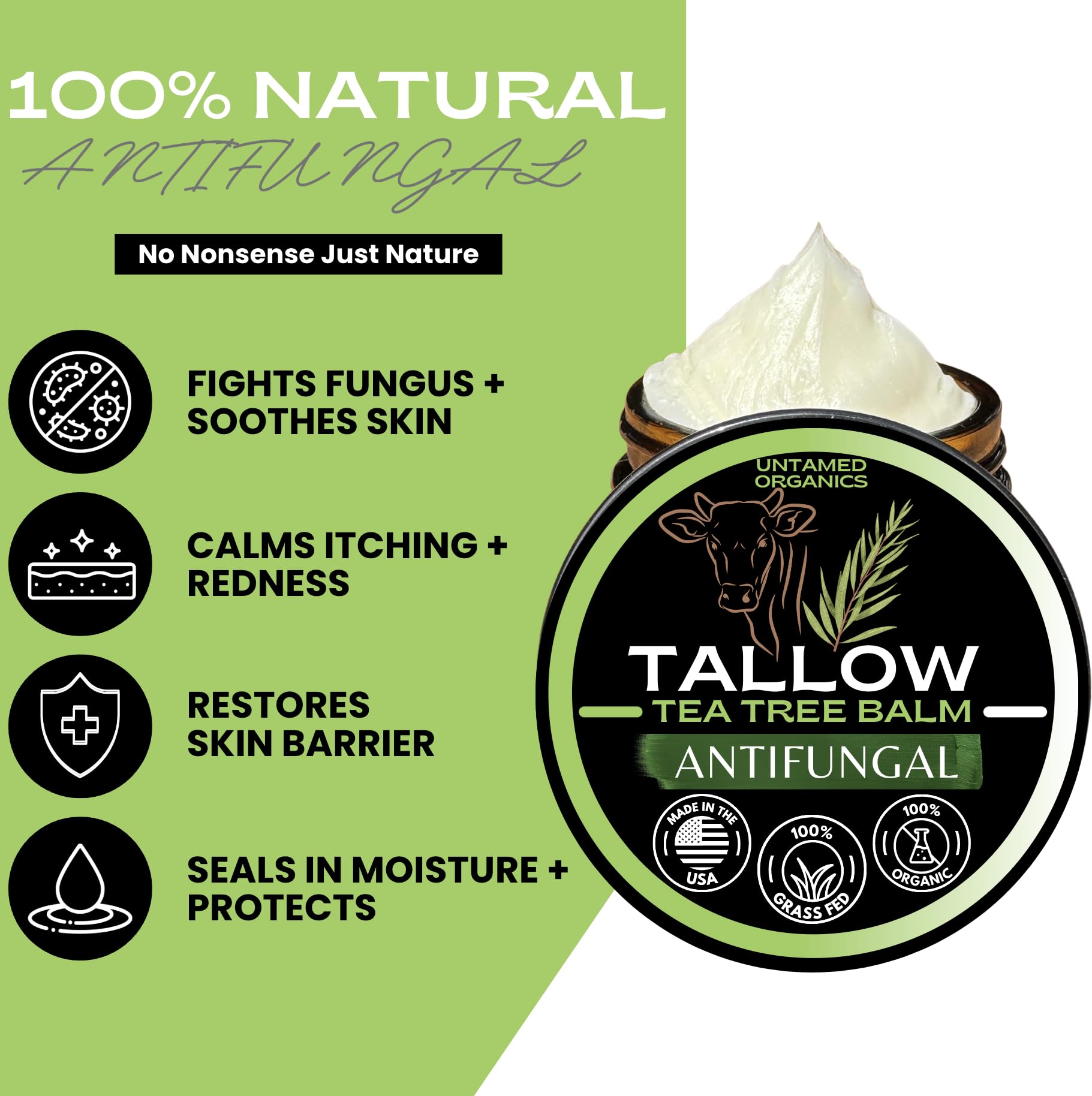 Untamed Organics Tallow Antifungal Balm | Organic Tea Tree Oil Balm with Grass-Fed Tallow | Non-Toxic Itchy Skin Relief Balm | All Natural Remedy for Athletes Foot, Jock Itch, Ringworm | 2 FL. oz.